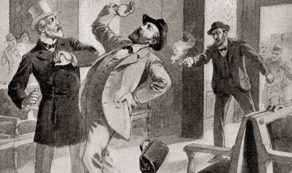 Charles Guiteau fires twice at President Garfield (Image: Getty)