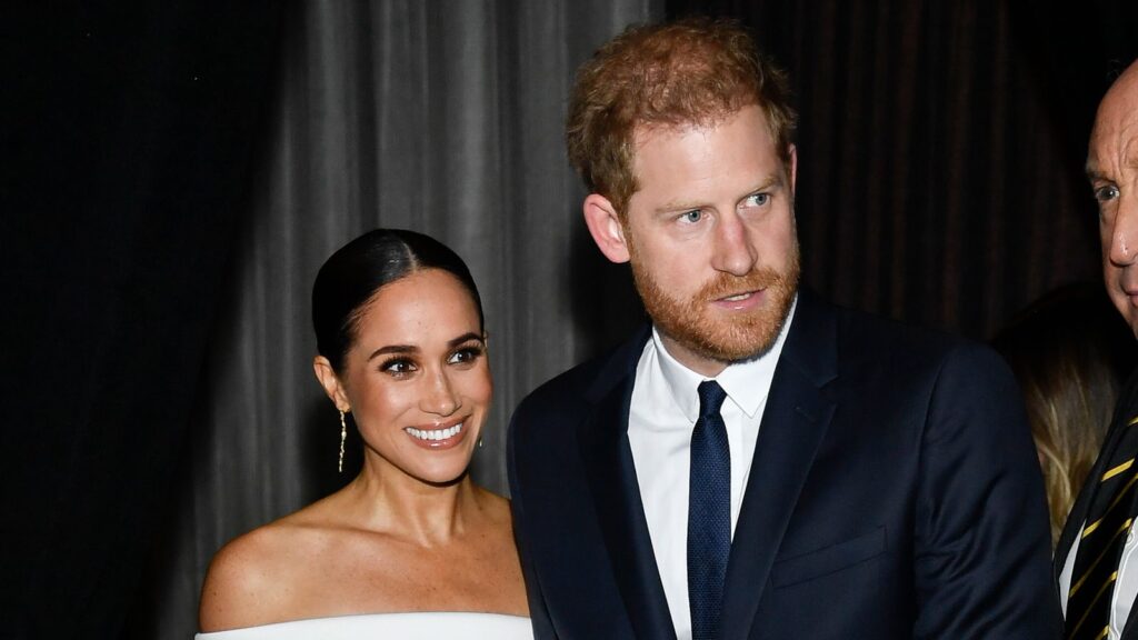 Harry and Meghan’s appearance at the party comes as preparations begin for the King‘s coronation in May.