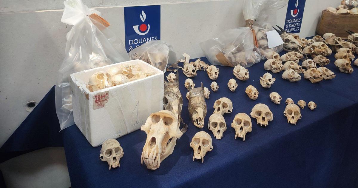 Photos of the remains show well-preserved skulls of various species. Customs officials said they have since been given to the Natural History Museum in Aix-en-Provence.